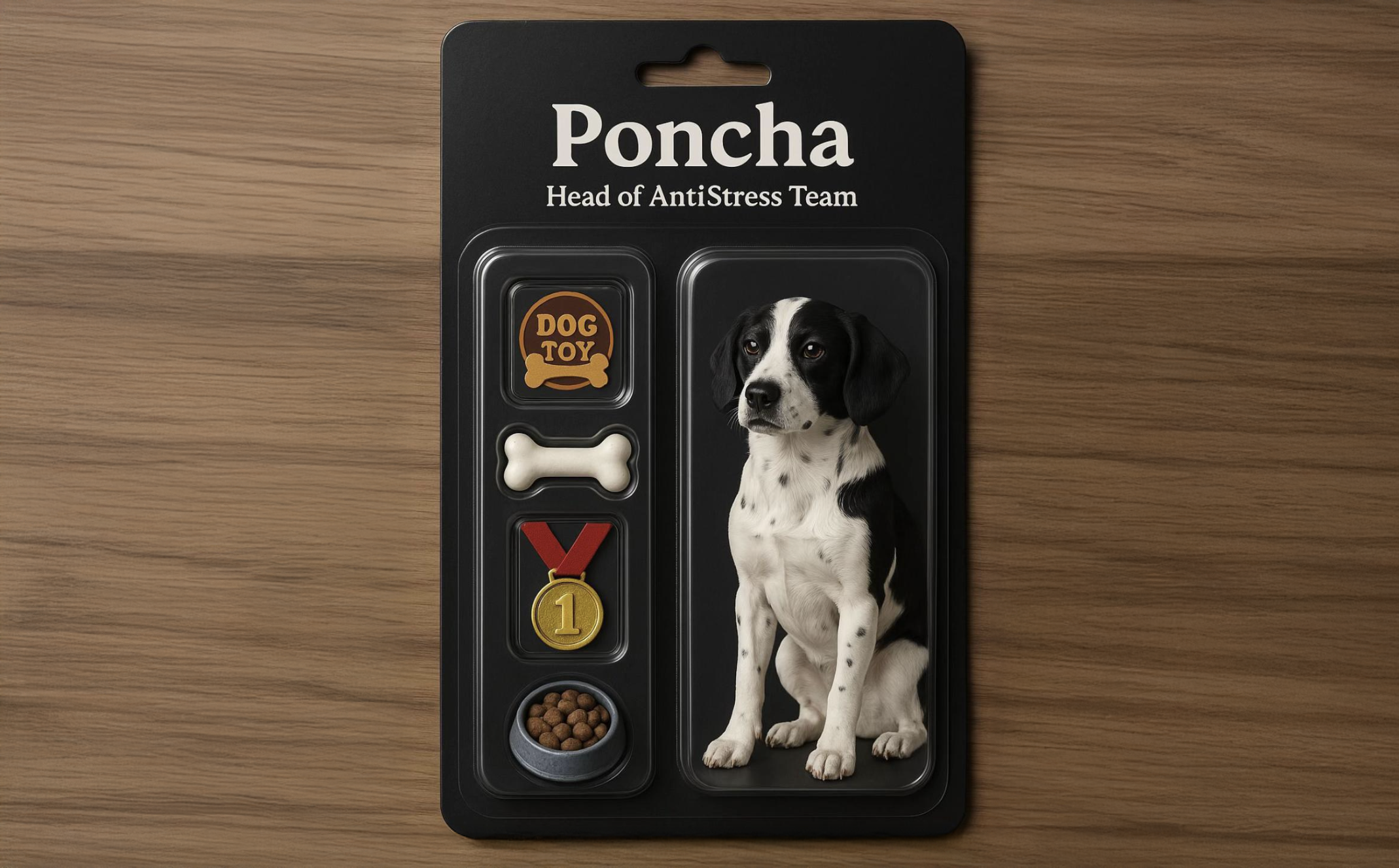 A Poncha é o cão do nosso account Hugo Correia, mas, na Mush, tem um papel muito especial. No meio da correria do dia-a-dia, com reuniões, deadlines para cumprir e brainstormings, a Poncha tem o dom de aparecer sempre no momento certo para nos lembrar de uma coisa simples, mas essencial: parar.